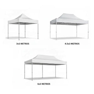 | Carpa 3x3 m | 300 x 300 cm | 17 kg | 156 x 26 x 26 cm |