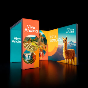 EasyBox es nuestro sistema exclusivo de stands modulares retroiluminados para ferias y eventos. Está compuesto por perfiles de aluminio de 12 cm y textiles con silicona SEG impresos por sublimación, fabricados por nosotros. El resultado: una solución profesional, visualmente impactante y reutilizable, que puedes montar tú mismo sin herramientas.