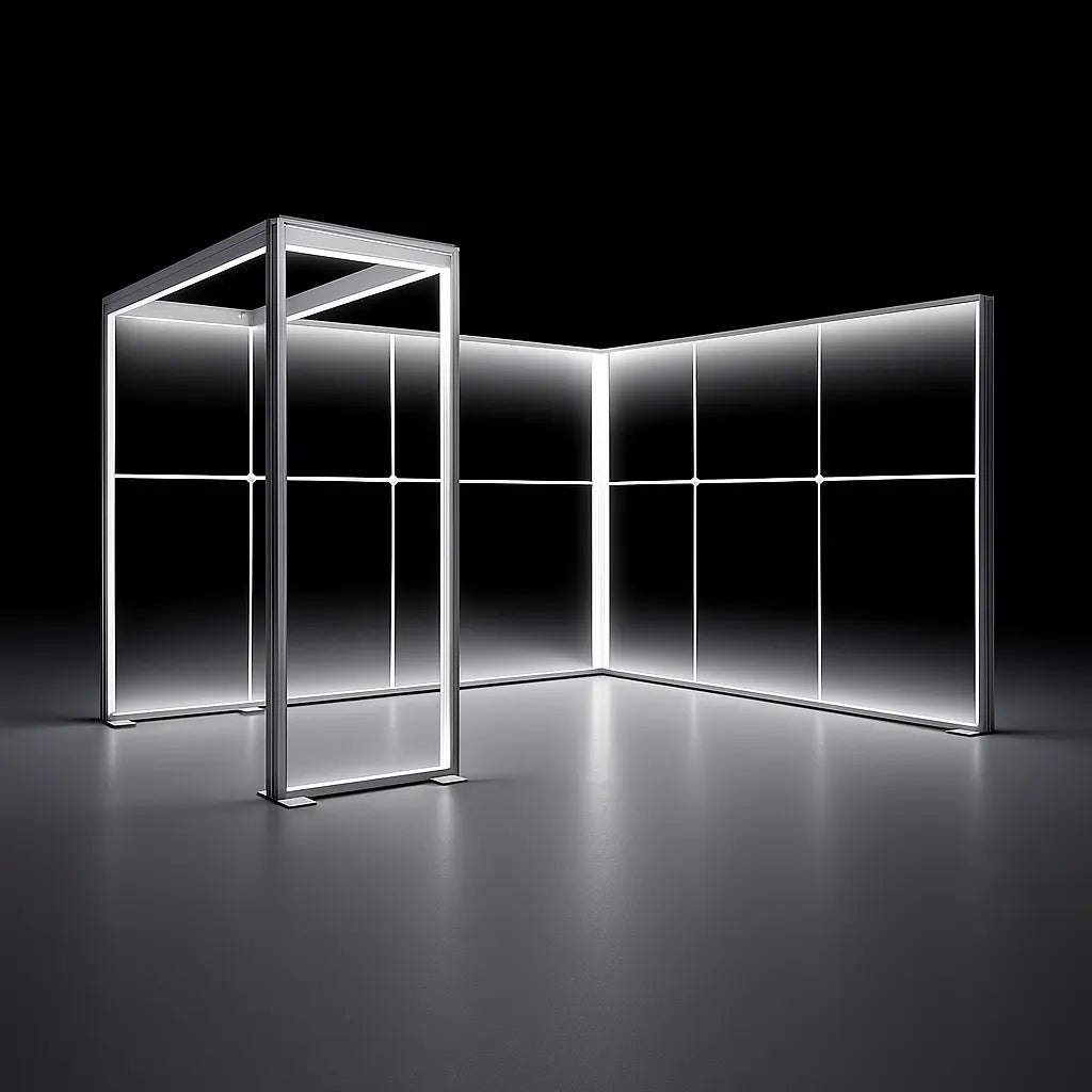 EasyBox es nuestro sistema exclusivo de stands modulares retroiluminados para ferias y eventos. Está compuesto por perfiles de aluminio de 12 cm y textiles con silicona SEG impresos por sublimación, fabricados por nosotros. El resultado: una solución profesional, visualmente impactante y reutilizable, que puedes montar tú mismo sin herramientas.
