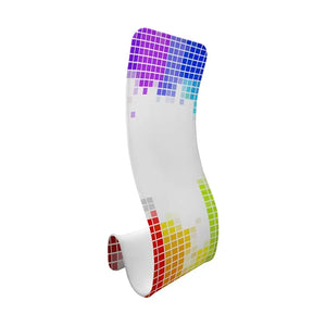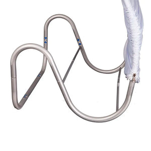 Expositor curvo realizado en aluminio curvado. Muy ligero y fácil de montar. El textil se monta como una "funda" con cremalleras. No necesita patas.