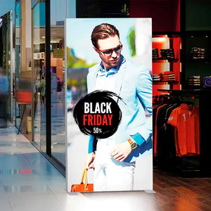 Iluminación LED lateral para una iluminación uniforme. Sin límite de tamaño: se fabrica a medida. Fácil de transportar, ideal para formatos grandes y reutilizables. |