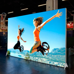 Iluminación LED en el fondo sobre placa de Dibond para mayor estabilidad. Tamaño máximo: 3 metros de ancho x 2 metros de alto. Diseño compacto y fácil de instalar. |